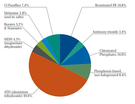 Il existe sur le marché plusieurs substances qui pourraient être en mesure de remplacer les retardateurs de flamme impliquant de la mélamine (pure ou dérivée avec des acides organiques ou inorganiques), ces dernières sont listées dans le Tableau 7 ci-après35.
