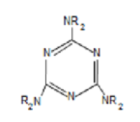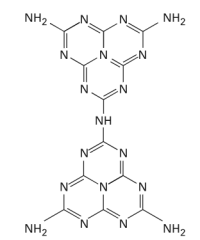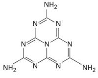 La mélamine ou 1,3,5-triazine-2,4,6-triamine en nomenclature IUPAC est une triazine hétérocyclique. Elle possède une teneur élevée en atomes d'azote - 66 % en masse. Sa structure fait également apparaître un noyau aromatique - délocalisation de 6 électrons au niveau du cycle - rendant la molécule plane.